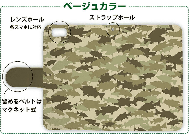 スマホケース 手帳型 iPhone12 mini iPhone12 Pro Max iPhone11 Pro Max 全機種対応 カード収納 マグネット iPhoneXs Max iPhoneXR iPhone SE 第二世代 Xperia 1 Galaxy AQUOS ARROWS 釣り 魚 ルアー セット 釣具 ロッド 面白い ブラックバス迷彩柄集