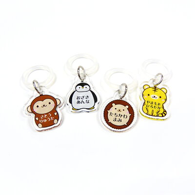 【お名前入り】アクリル傘マーカー アニマル2(ペンギン、はりねずみ、とら、さる)[名入れ・文字入れ無料][メール便:10個まで]入園・入学準備に!お名前を入れて作る傘用のネームタグ