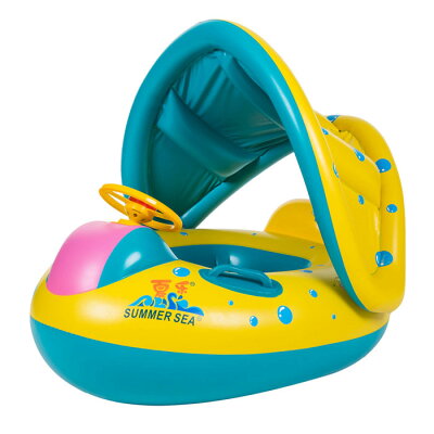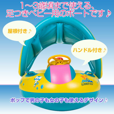 足つきベビー用インフレータブルボート 1歳から3歳まで 乳幼児 屋根付き浮き輪 日焼け防止 紫外線対策 ハンドル 屋根の角度調整取り外し可能 ビーチ 夏 プール海水浴に 男女兼用 厚手 ◇LPY-001