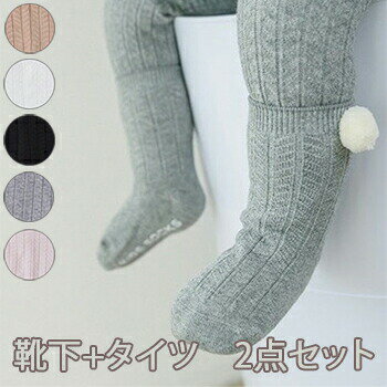 ツイストタイツ+ポンポン靴下2点セット/10分丈/タイツ/靴下/伸縮/カラバリ/スパッツ/無地/ストレッチ/ツイスト【子供服/キッズ/韓国子供服/子ども服/CHUMCHUM】【100/110/120/130/140/150】
