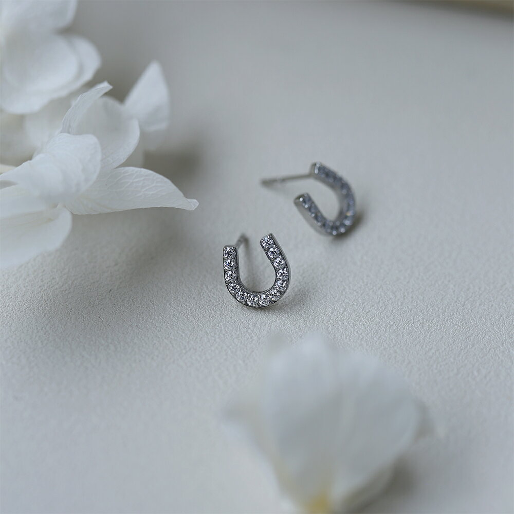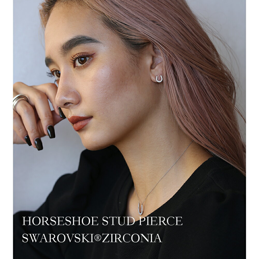 [両耳用] ピアス 金属アレルギー対応 ピアス セカンドピアス ファーストピアス メンズピアス キャッチ スタッド 小ぶり 小さめ 小さい ステンレス 316L ピアス スワロフスキー キュービック 馬蹄 ホースシュー モチーフ プラチナ ホワイトゴールド 色