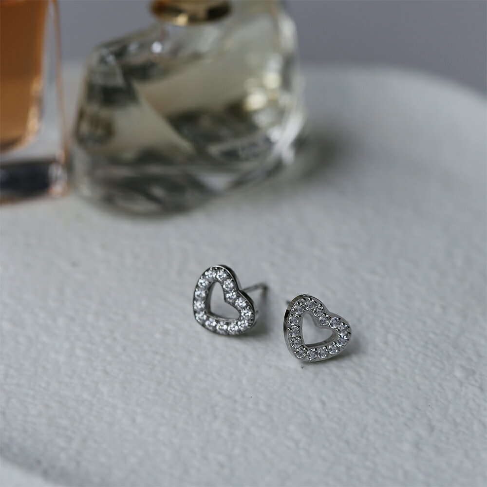 [両耳用] ピアス 金属アレルギー対応 ピアス セカンドピアス ファーストピアス メンズピアス キャッチ スタッド 小ぶり 小さめ 小さい ステンレス 316L ピアス スワロフスキー キュービック ハート オープンハート モチーフ プラチナ ホワイトゴールド 色