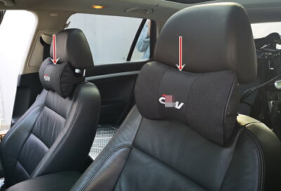 新型 ホンダ CR-V 専用 ロゴ付き牛革レザーネックパッド PUレザー 左右セット 首サポートで疲れを軽減 ピロー 車用首枕 ブラック 2P 10252